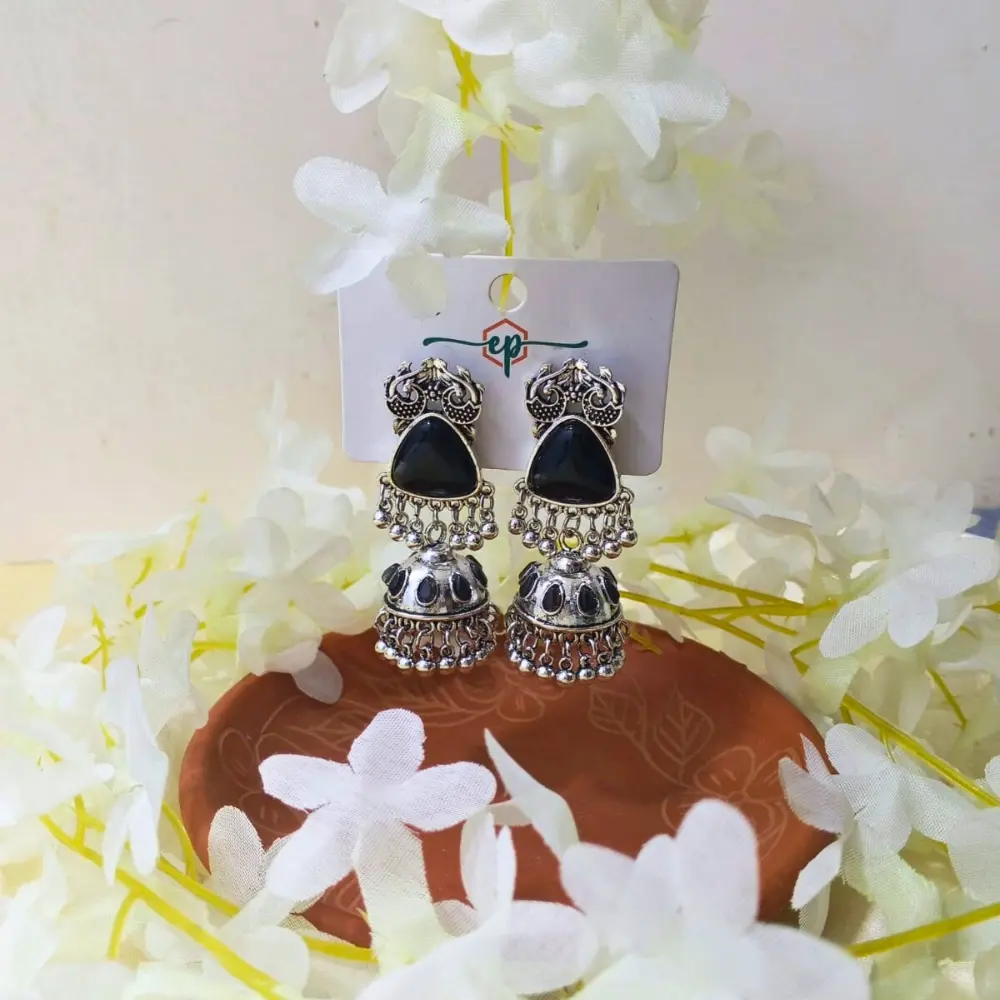 এই বিশেষ সিলভার কানের দুলটি কালো রঙের স্টোন এবং ঝুমকার ডিজাইনের মাধ্যমে তৈরি করা হয়েছে। এটি যে কোনো ঐতিহ্যবাহী বা আধুনিক আউটফিটের সাথে খুব ভালোভাবে মানিয়ে যাবে। একটি চমৎকার গহনা যা আপনার স্টাইল এবং সৌন্দর্যকে আরও আকর্ষণীয় করে তুলবে।