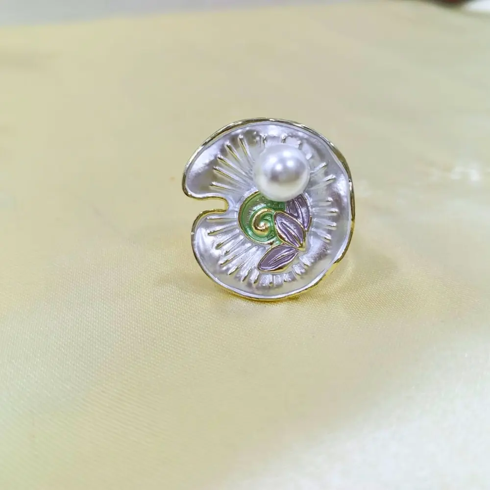 এই সাদা রিংটি একটি শঙ্খ আকৃতির ডিজাইনে তৈরি, যার মধ্যে রয়েছে একটি মুক্তো স্টোন এবং পাতার ডিজাইন। রিংটির সাইজ অ্যাডজাস্টেবল, তাই যে কোনো আঙুলে সহজে মানিয়ে যায়। আধুনিক ডিজাইনের এই রিংটি পার্টি বা যেকোনো বিশেষ অনুষ্ঠানে পরার জন্য উপযুক্ত। এটি আপনার স্টাইলে নতুন মাত্রা যোগ করবে এবং আপনাকে আরও স্টাইলিশ দেখাবে।