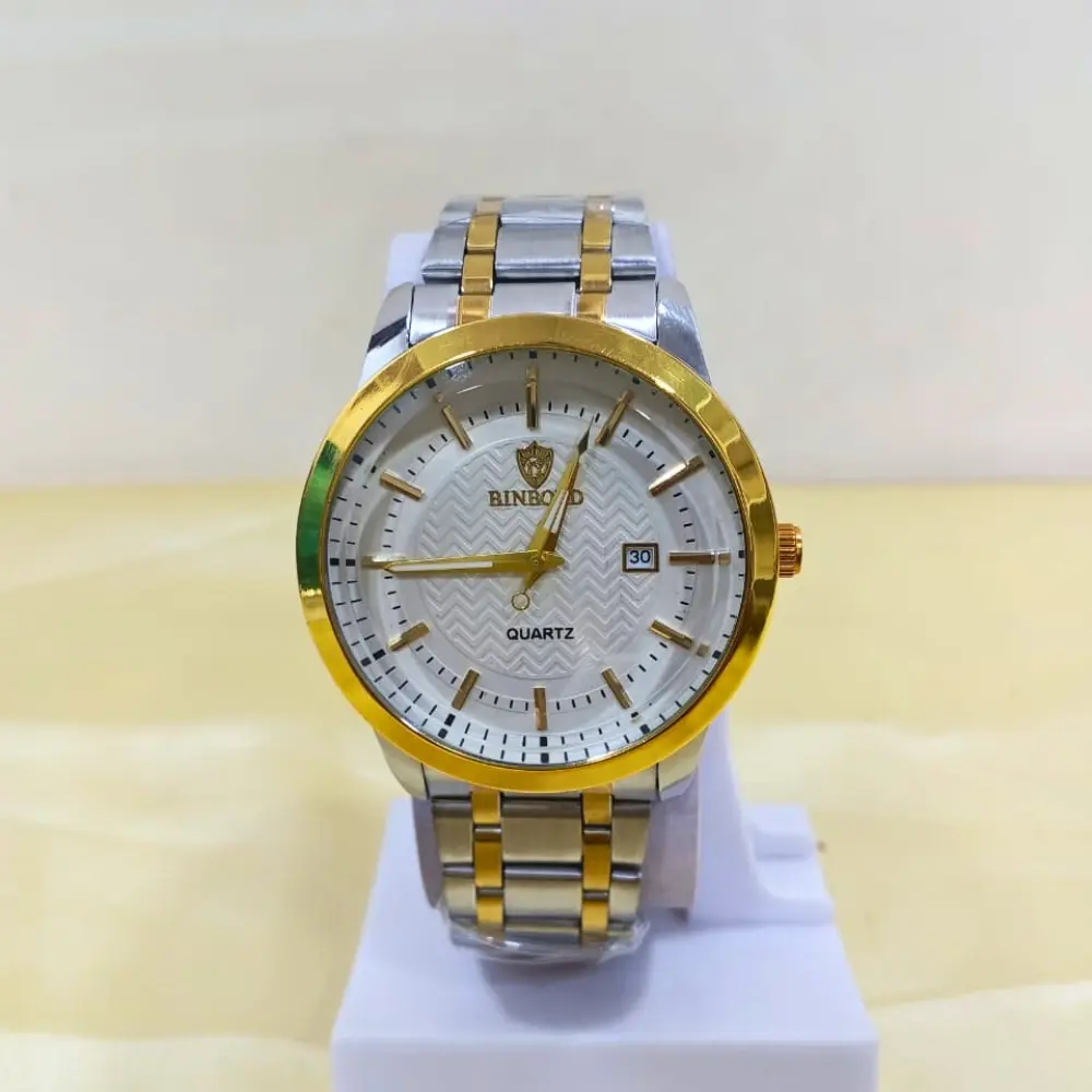 – আকর্ষণীয় ডিজাইন: সিলভার ও গোল্ডেন স্ট্রাইপ চেইন এবং হোয়াইট ডায়াল ঘড়িটিকে করেছে আরও ক্লাসি এবং প্রিমিয়াম।