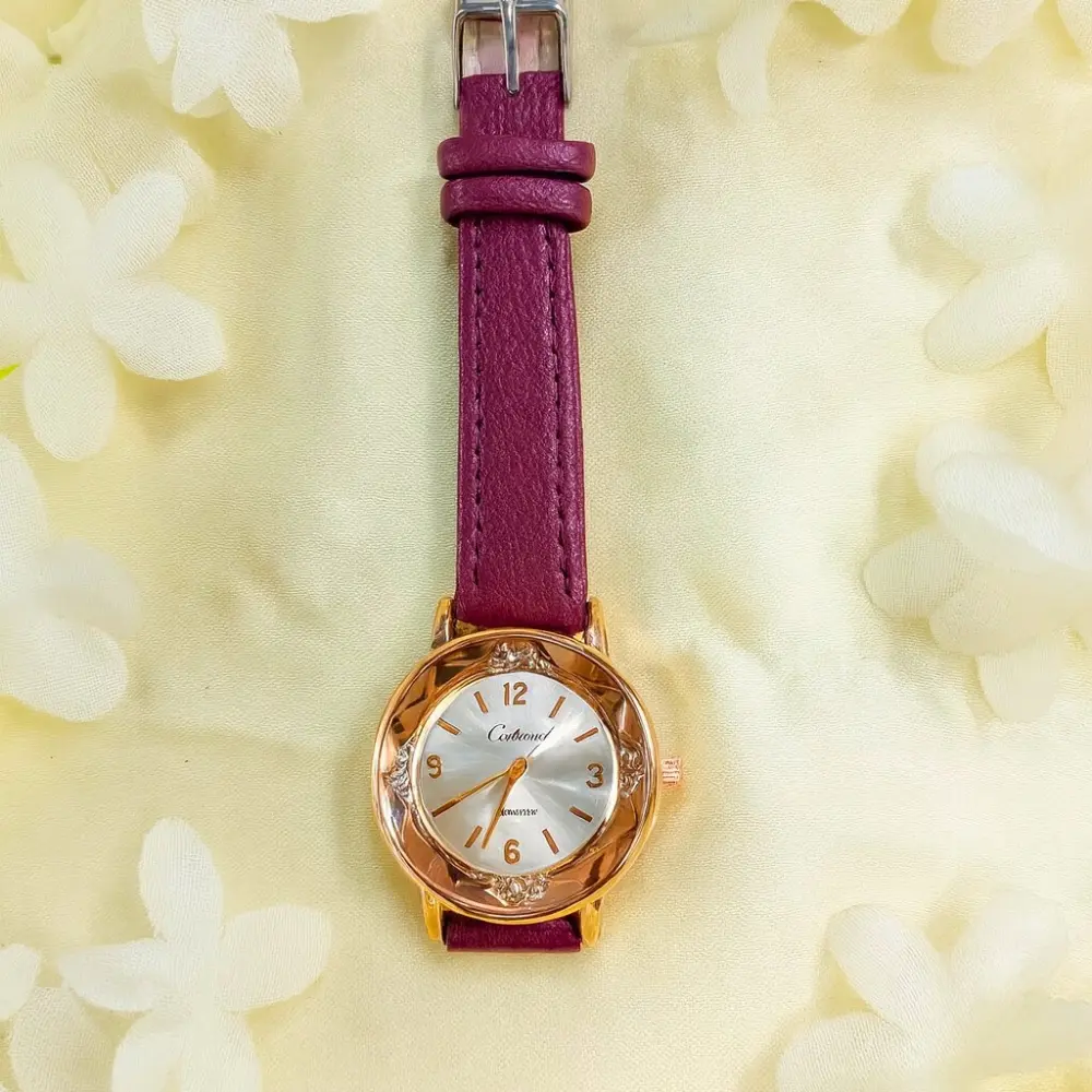 – ক্লাসিক ডিজাইন: ঘড়ির গোলাকার সাদা ডায়াল, গাঢ় ম্যাজেন্টা বেল্ট এবং রোজ গোল্ড রঙের বডি এটিকে আরও প্রিমিয়াম এবং এলিগ্যান্ট করে তোলে। এর আধুনিক এবং ক্লাসিক ডিজাইন যেকোনো ধরনের অনুষ্ঠানে বা প্রতিদিনের ব্যবহারে খুবই উপযুক্ত।
