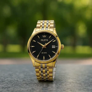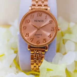 - ক্লাসিক ডিজাইন: ঘড়ির গোলাকার সাদা ডায়াল, কালো বেল্ট এবং সোনালি রোজ গোল্ড বডি এটিকে প্রিমিয়াম এবং এলিগ্যান্ট করে তোলে। এর ডিজাইন যেকোনো অনুষ্ঠানে বা প্রতিদিনের ব্যবহারে বিশেষভাবে উপযুক্ত।