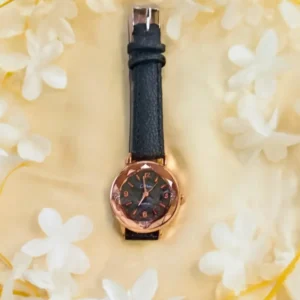 - স্টাইল ও ফ্যাশনের সমন্বয়: এই ওয়াচটি একটি অত্যন্ত স্টাইলিশ এবং আধুনিক হাতঘড়ি, যা আপনার ফ্যাশনেবল লুককে আরও আকর্ষণীয় এবং অনন্য করে তুলবে। এর সোনালি রোজ গোল্ড বডি এবং কালো লেদার স্ট্র্যাপ ঘড়িটিকে আরও প্রিমিয়াম এবং এলিগ্যান্ট করে তোলে।